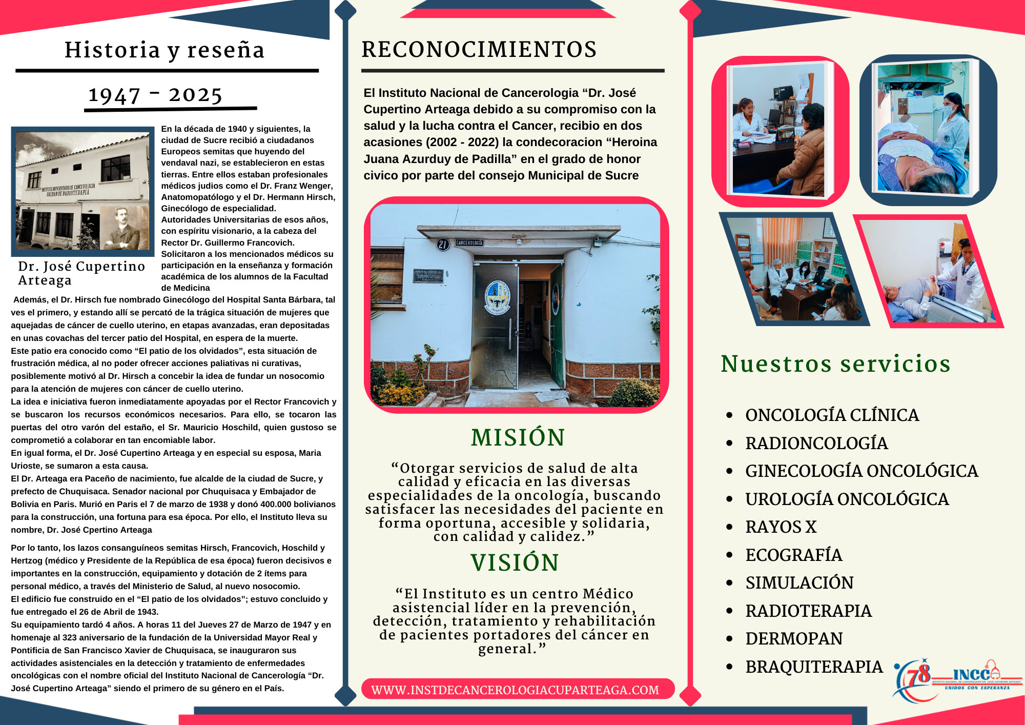 El 25 de marzo de 1947, el Consejo Universitario de San Francisco Xavier, liderado por el Rector Guillermo Francovich, sancionó el reglamento del Instituto de Fisioterapia «Cupertino Arteaga». Aunque su nombre inicial era de fisioterapia, uno de sus objetivos principales era la investigación, tratamiento e internación de pacientes con cáncer.